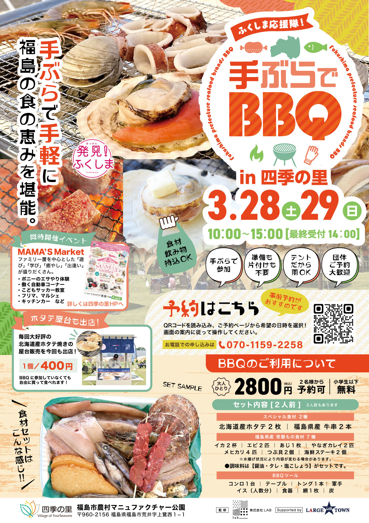 3/28(土)3/29(日)10:00~15:00 の2日間、好評の手ぶらでBBQを四季の里で開催します🤗